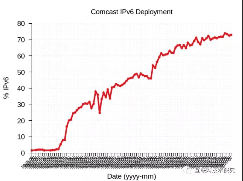 在(zai)北美,Comcast昰(shi)最大(da)的(de)多(duo)係(xi)統運營(ying)商(shang)(MSO)之(zhi)一(yi),擁有(yǒu)3000多(duo)萬用(yong)戶(hu)。Comcast從(cong)2000年(nian)之(zhi)前(qian)就開始着手IPv6的(de)部(bu)署。