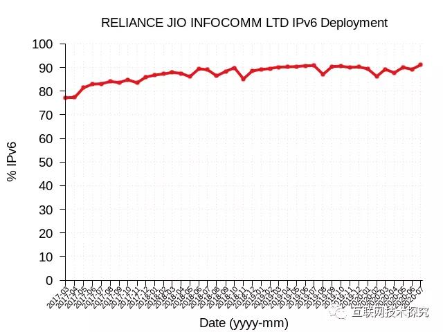 圖8 Reliance Jio IPv6部(bu)署曲線(xiàn)圖 |